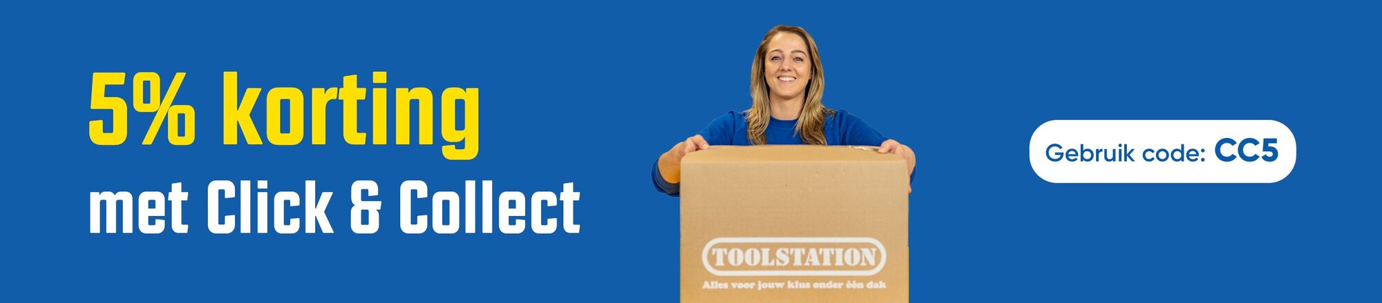 Wil je liever online bestellen, maar niet wachten op het moment dat je bestelling wordt thuisbezorgd? Maak dan gebruik van Click & Collect! Met Click & Collect betaal je online en haal je 10 minuten later jouw bestelling al op in een Toolstation-vestiging naar keuze. En dat helemaal gratis! Onze vestigingen zijn geopend van maandag t/m zaterdag.